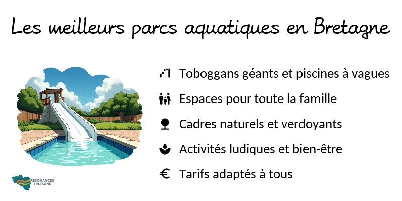 La Bretagne, célèbre pour ses paysages côtiers à couper le souffle et ses coutumes culturelles hors du commun, propose aussi une expérience aquatique inoubliable pour les familles en quête de distraction et de frissons : les parcs aquatiques ! Que vous soyez dans le Morbihan, les Côtes d’Armor, le Finistère ou l’Ille-et-Vilaine, ces parcs aquatiques sont le lieu parfait pour passer une journée ludique entre amis ou en famille. Toboggans géants, piscines à vagues, rivières sauvages… petits et grands vont s’amuser comme des fous tout en se rafraîchissant pendant l’été. Découvrez notre sélection des meilleurs parcs aquatiques de Bretagne !